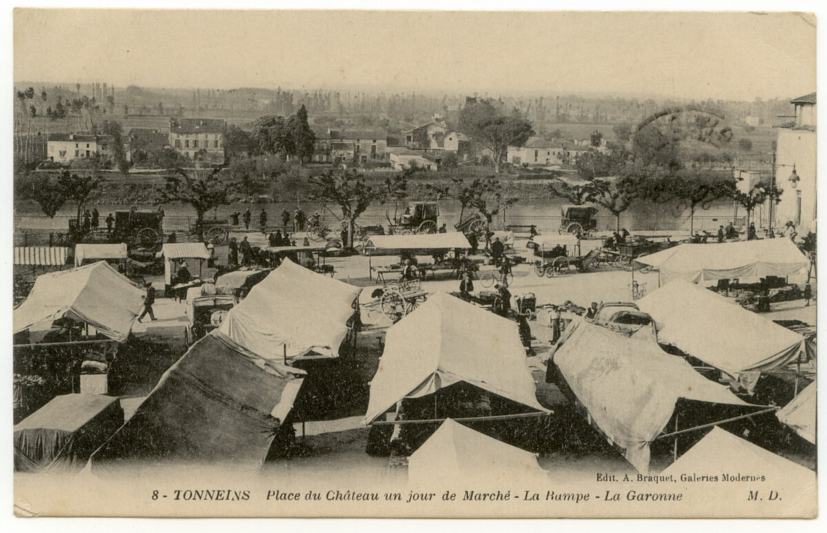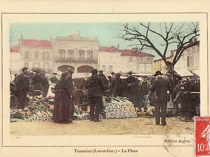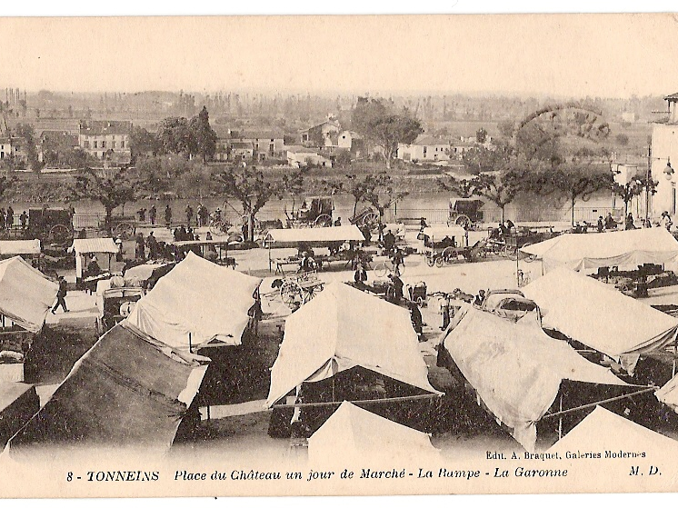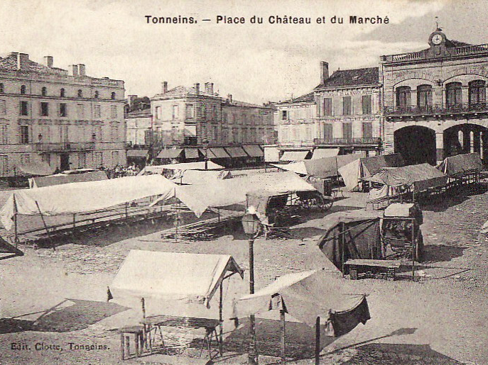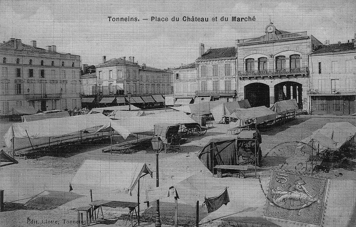 Tonneins. Place du Château un jour de marché. Source : Alain Glayroux.